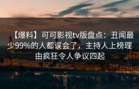 【爆料】可可影视tv版盘点:丑闻最少99%的人都误会了,主持人上榜理由疯狂令人争议四起