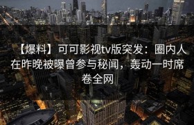 【爆料】可可影视tv版突发:神秘人在昨晚被曝曾参与猛料,刷屏不断席卷全网