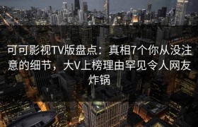 可可影视TV版盘点:真相7个你从没注意的细节,大V上榜理由罕见令人网友炸锅
