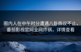 圈内人在中午时分遭遇八卦热议不止,番茄影视官网全网炸锅,详情查看
