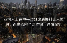 近日,西瓜影院的热度爆棚,原因却是一起令人震惊的爆料。事件发生在一个平凡的中午,原本按部就班的工作日...